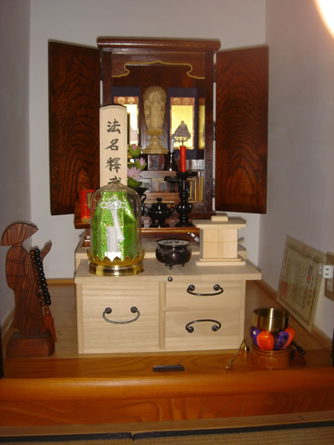 三重県四日市市 I 様 ケヤキを摺り漆で仕上げた、小型仏壇です。 桐の木でできたお仏壇の台と、大切なものを収納していただけます。